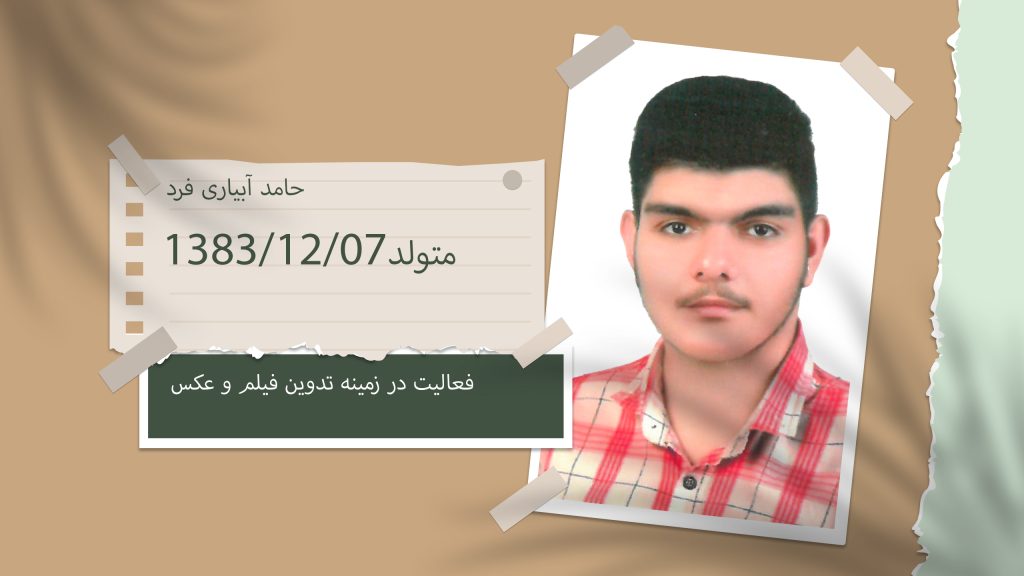 حامد آبیاری فرد، تدوینگر ویدئو و تولیدکننده محتوای دیجیتال، با سه سال سابقه فعالیت حرفهای در حوزه تدوین ویدئوهای مذهبی، فرهنگی و مستند. وی همکاری با گروه مستندسازان صبا جهرم را در کارنامه خود دارد و در تولید ویدئوهای مذهبی و فرهنگی، تدوین مراسمهای مختلف و تولید محتوای دیجیتال برای شبکههای تلویزیونی از جمله شبکه فارس نقش داشته است.